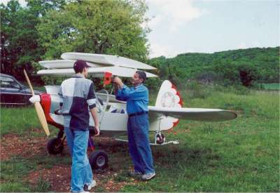 « When I fly the big airplanes my knees tremble »,’ said Yves Segonds. It has nothing to do with fear of flying for the 57-year-old man who has been in a real airplane only four times in his life. No, he is referring to radio-controlled model airplanes that are piloted from the ground, which he has a passion for building. His have won prizes from model airplane associations, are imitated by other constructors and have appeared on France’s Ushuaia adventure television program. »I like to make airplanes that are different from what everyone else does, » said Segonds, at his home in the village of Milhars in southwest France. He builds them not from diagrams, but from photographs of the originals. A high point came in 1992, when he built the largest fourengine model airplane in Europe, his Lockheed Orion P-3C, a U.S. landbased maritime patrol and anti-submarine warfare aircraft first flown in 1968. The model weighs 21 kilos (46 pounds), has a wing span of 3.25 meters (about 10 feet), and was timed by the Fédération Française d’Aéro-Modélisme flying at 150 kph (94 mph). Segonds is proudest, however, of his Grumman E-2C Hawkeye early warning and control aircraft. It is the kind of radar airplane the U.S. Navy used during the Gulf War, with its distinctive round dish above the fuselage. »I’ve never seen an airplane fly the way that one does, » he said of his model, which made the cover of RCM (Radio Commande Magazine). »It does rolling, looping, flying on its back for 200 meters, one meter from the ground. But it will not accept engine failure. The moment an engine cuts, it rolls onto its back and dives to the ground. » The plane crashed three times and he rebuilt it each time. He is obsessive about details. The Hawkeye’s dish radar rotates during the flight, like the original. His landing carriages descend slowly, never just springing out. He builds everything himself, radio control equipment included, and it costs him very little, since he uses anything on hand, like old bicycle spokes for the landing gears. All he buys are the engines and propellers. Segonds made his first airplane in 1950 from wood of the Aveyron region, where he was born.